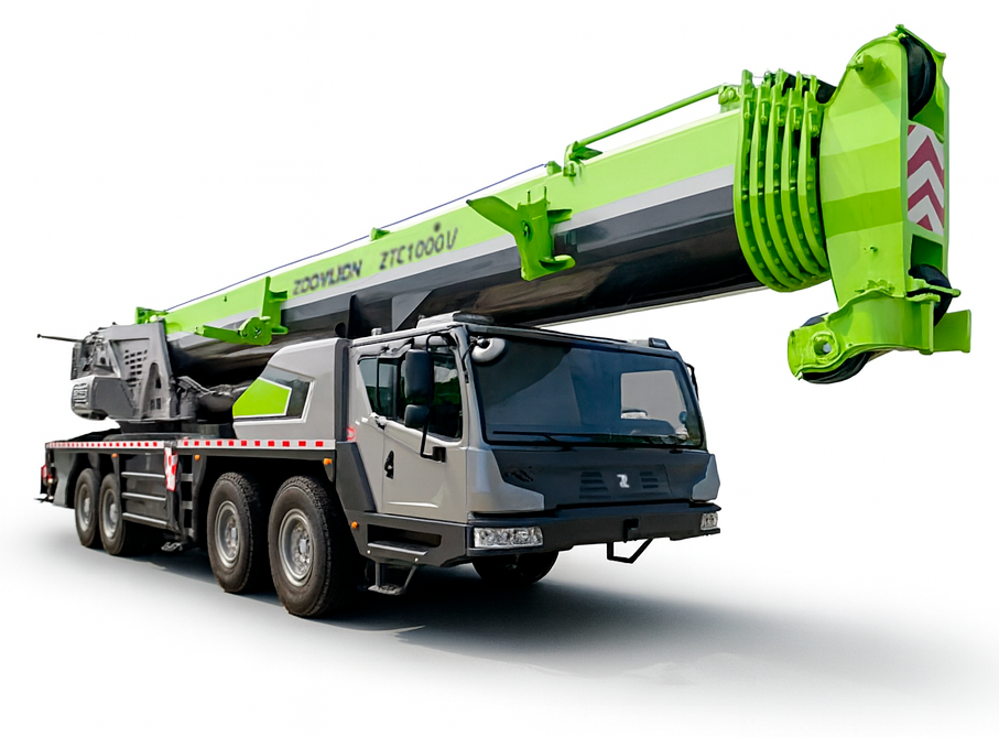 Автокран Zoomlion ZTC1000V – это мощное и надежное оборудование, разработанное для выполнения различных задач в строительстве. Производится в Китае и оснащен дизельным двигателем с мощностью 276 кВт, что обеспечивает высокую производительность в любых условиях. Основная стрела длиной от 13,6 до 64 метров и гусек длиной 10,4 метра позволяют поднимать грузы на высоту до 82,2 метра. Снаряженная масса автокрана составляет 49805 кг, что вместе с нагрузкой на заднюю ось в 26000 кг и переднюю ось в 24000 кг обеспечивает отличную устойчивость. Автокран обладает габаритами 14990 × 2900 × 3990 мм и колесной формулой 8×4, что обеспечивает отличную проходимость. Максимальная скорость передвижения составляет 85 км/ч, а расход топлива – 46 литров на 100 км пробега, что делает его экономичным в эксплуатации. Радиус поворота хвостовой части и широкая база выносных опор (7,8 метра) обеспечивают устойчивость и безопасность на строительной площадке.